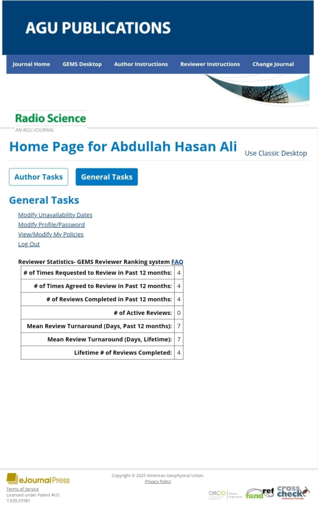 تم اختيار المدرس المساعد عبدالله حسن علي، التدريسي في كلية التربية للعلوم الصرفة مقوِّمًا علميًا (Reviewer) في المجلة العالمية Radio Science، الصادرة عن دار النشر Wiley بالتعاون مع الإتحاد الدولي لعلوم الراديو (URSI) والإتحاد الجغرافي-الفيزيائي الأمريكي (AGU)، والمفهرسة ضمن مستوعبات Scopus وWeb of Science، وتصنَّف ضمن الربع الثاني (Q2)، ويبلغ معامل تأثيرها (Impact Factor) 1.5.