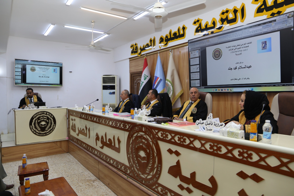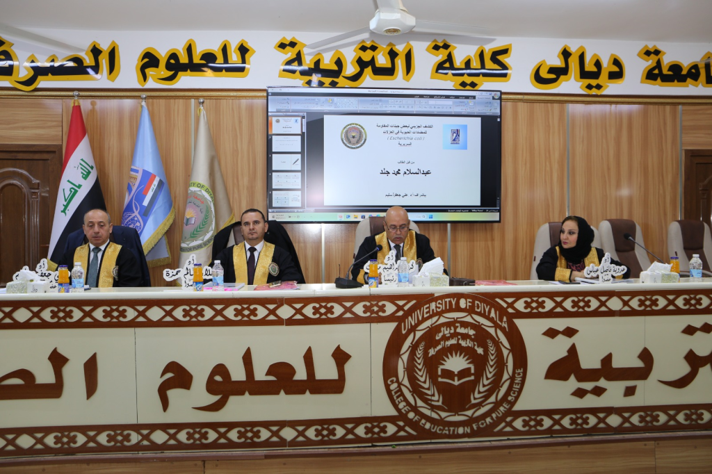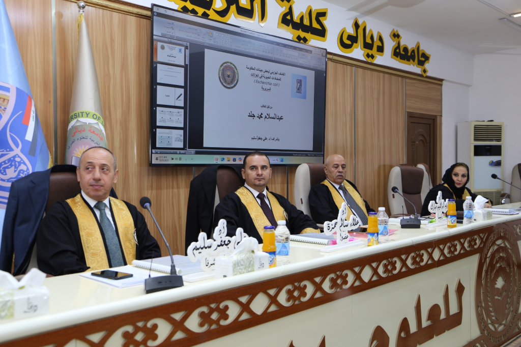ناقشت كلية التربية للعلوم الصرفة بجامعة ديالى رسالة الماجستير الموسومة ( الكشف الجزيئي لبعض جينات المقاومة للمضادات الحيوية في عزلات Escherichia coli السريرية ) وعلى قاعة الندوات والمناقشات