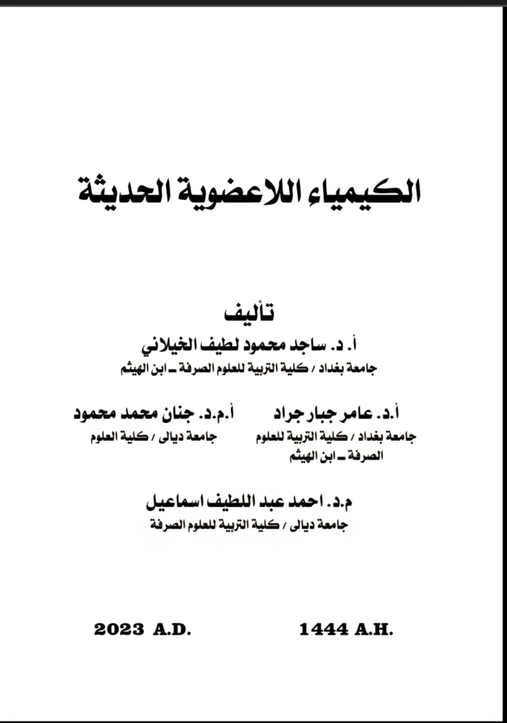 في إطار السعي المستمر للارتقاء بالمستوى العلمي وتطوير المناهج التعليمية، ساهم المدرس الدكتور أحمد عبد اللطيف، أحد تدريسيي قسم علوم الكيمياء في كلية التربية للعلوم الصرفة بجامعة ديالى، في تأليف كتاب أكاديمي بعنوان ( الكيمياء اللاعضوية الحديثة ) والموجّه لطلبة المرحلة الأولى في كليات العلوم والتربية