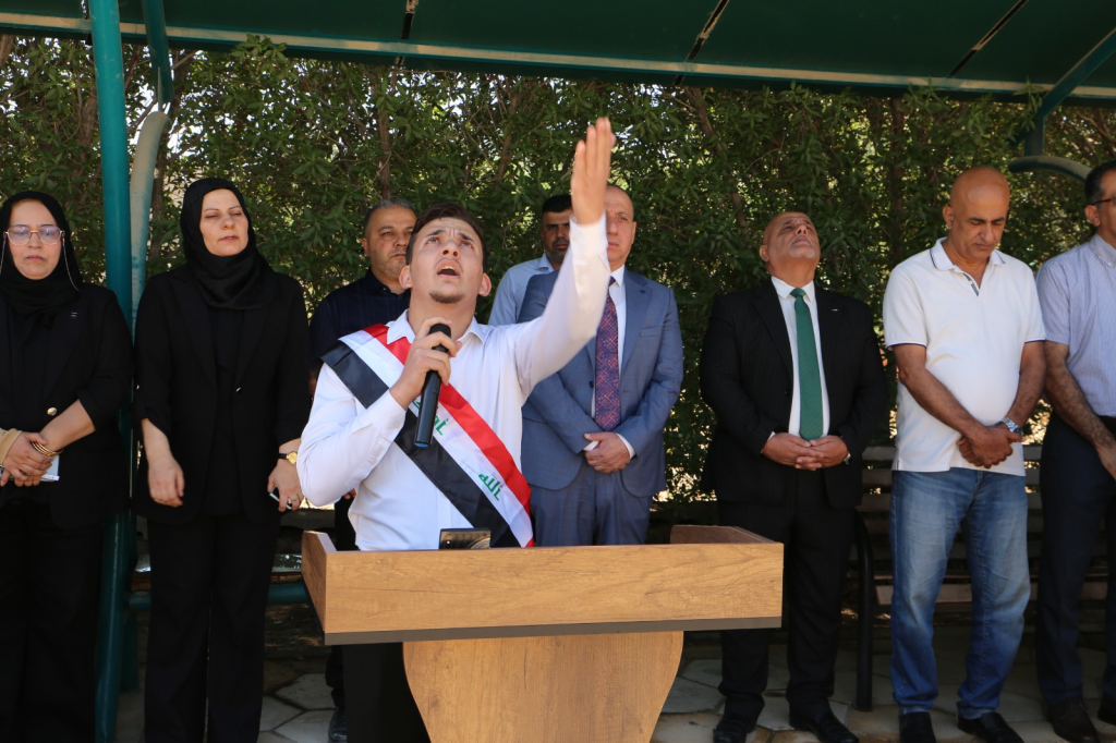 استُهِلَّ الحفل بتلاوة مباركة من آيات الذكر الحكيم، أعقبتها مراسم رفع العلم العراقي وعزف النشيد الوطني، في أجواء اتسمت بالاعتزاز والانتماء الوطني.