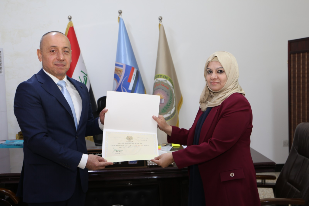 كرّمت كلية التربية للعلوم الصرفة بجامعة ديالى، ممثلة بعميدها الاستاذ الدكتور علي جعفر سليم ، المدرسة سعاد خضير عباس من معهد الأمل للصم والبكم لذوي الاحتياجات الخاصة، تقديراً لعطائها وجهودها المتميزة في تدريب طلبة الكلية على لغة الإشارة وتنمية مهارات التواصل مع فئة الصم والبكم