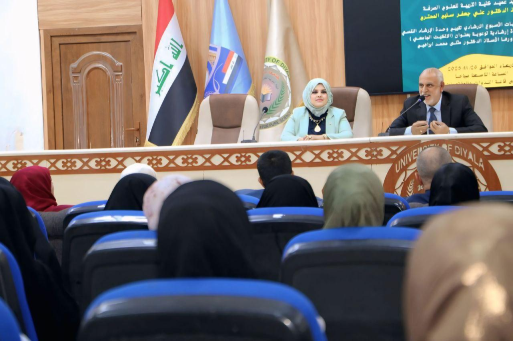 ضمن فعاليات الأسبوع الإرشادي ولليوم الرابع على التوالي، عقدت كلية التربية للعلوم الصرفة ندوة إرشادية توعوية والموسومة (الاتكيت الجامعي) على قاعة الندوات والمناقشات